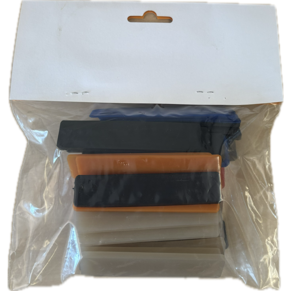 Distansklossar i 5 olika storlekar 10 av varje för smidig inpassning av byggelement, reglar m.m. Den är tillverkad av formsprutad LDPE med pigment, den är lätt, hållbar och återvinningsbar. Jämn yta och exakt dimension underlättar montage.