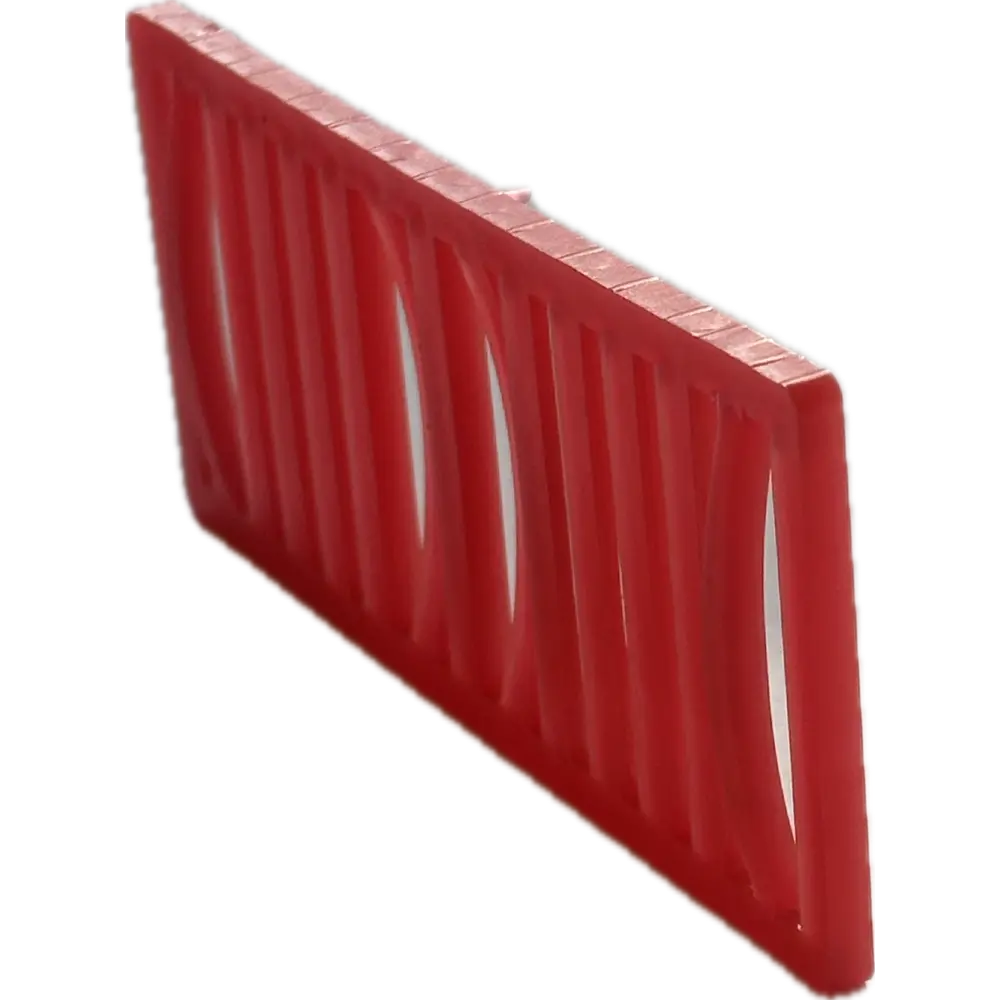 Glaskloss i röd LDPE med bågformad profil för stabil och exakt glasmontering. Ger jämn lastfördelning och förhindrar skevhet i glaspartiet.